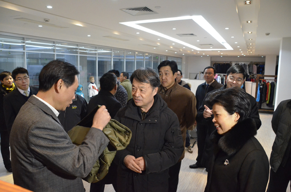 (图2:杨传堂主任(中)、葛慧君副省长(右一)视察明升服装成衣展示厅)