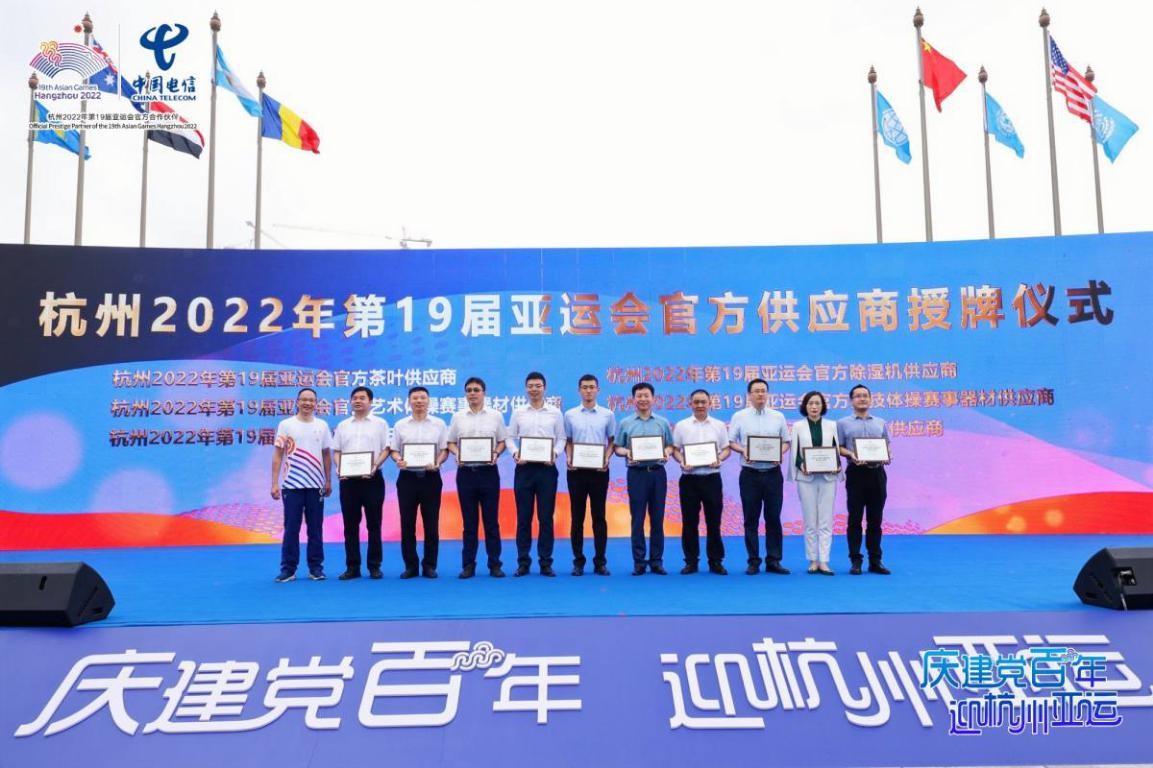 6月29日,杭州亚组委举行“庆建党百年·迎杭州亚运——迈步新征程,毅行钱塘江”活动,同期举办了杭州2022年第19届亚运会官方供应商授牌仪式。LD.COM-乐动(中国)亚运事务协调专班副班长施小云作为代表,从杭州亚组委市场开发部副部长梁强勇手中接过了“杭州2022年第19届亚运会官方茶叶供应商”的牌匾。